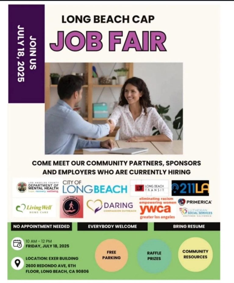 Join us at the Long Beach CAP Job Fair, where you can connect with community partners, sponsors, and employers who are actively hiring. This inclusive event welcomes everyone and provides a fantastic opportunity to explore job openings, network, and access valuable community resources.