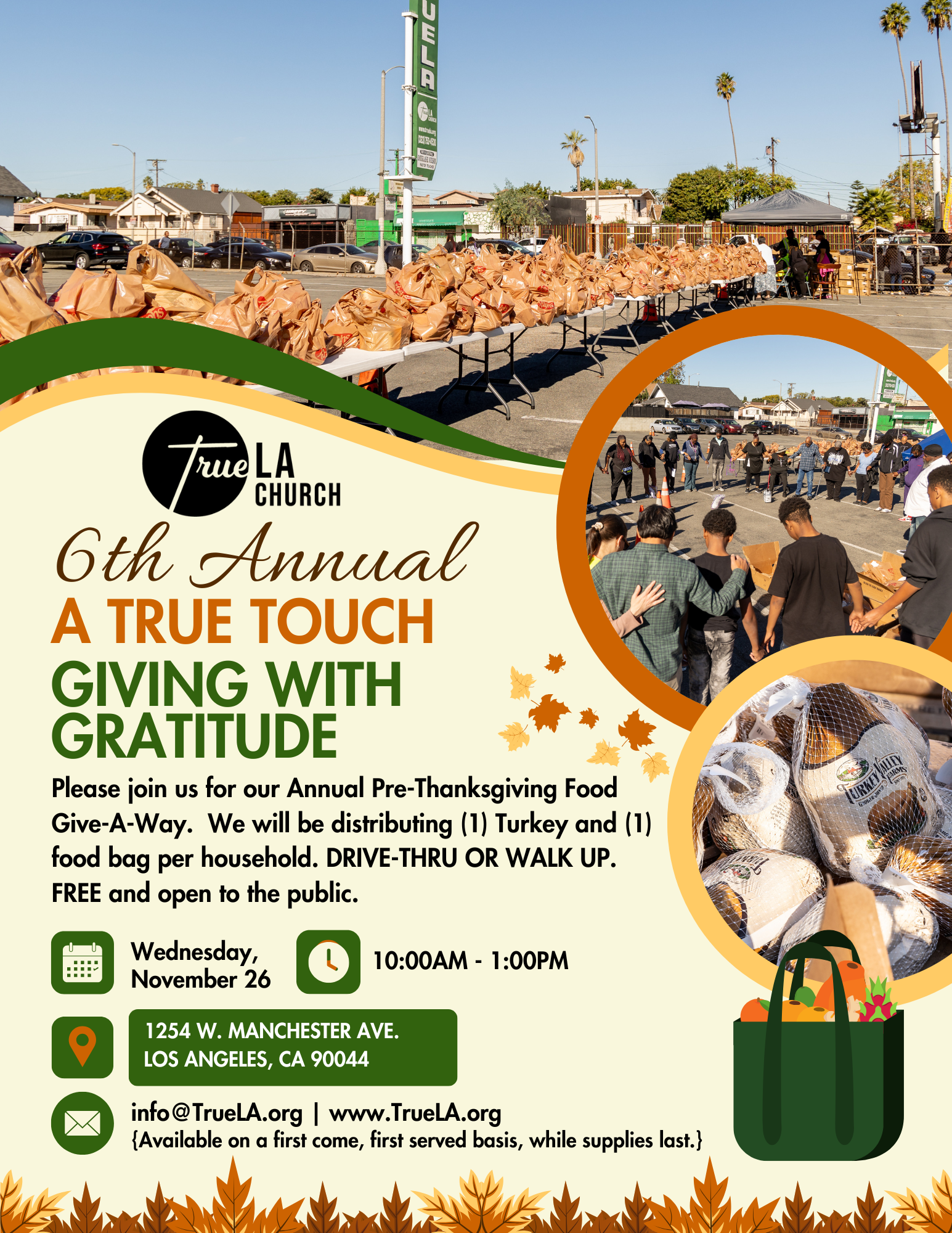 Join our friends at True LA Church for their 6th Annual Pre-Thanksgiving Food Give-A-Way.