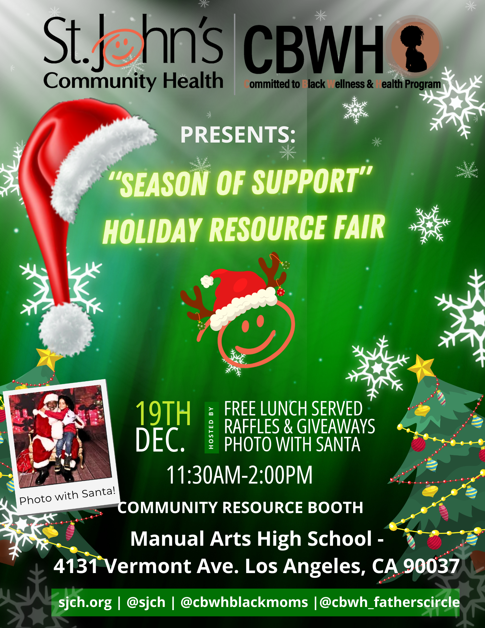 Join St. John's Community Health and the CBWH program for the "Season of Support" Holiday Resource Fair! This is a great community event with resources and holiday fun.