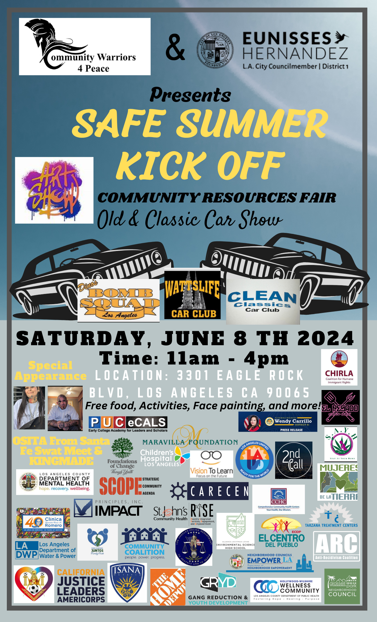 L.A. CADA will be at the Safe Summer Kick Off Community Resources Fair & Old & Classic Car Show, presented by Community Warriors 4 Peace & Eunisses Hernandez, on Saturday, June 8, 2024, from 11:00 AM to 4:00 PM.