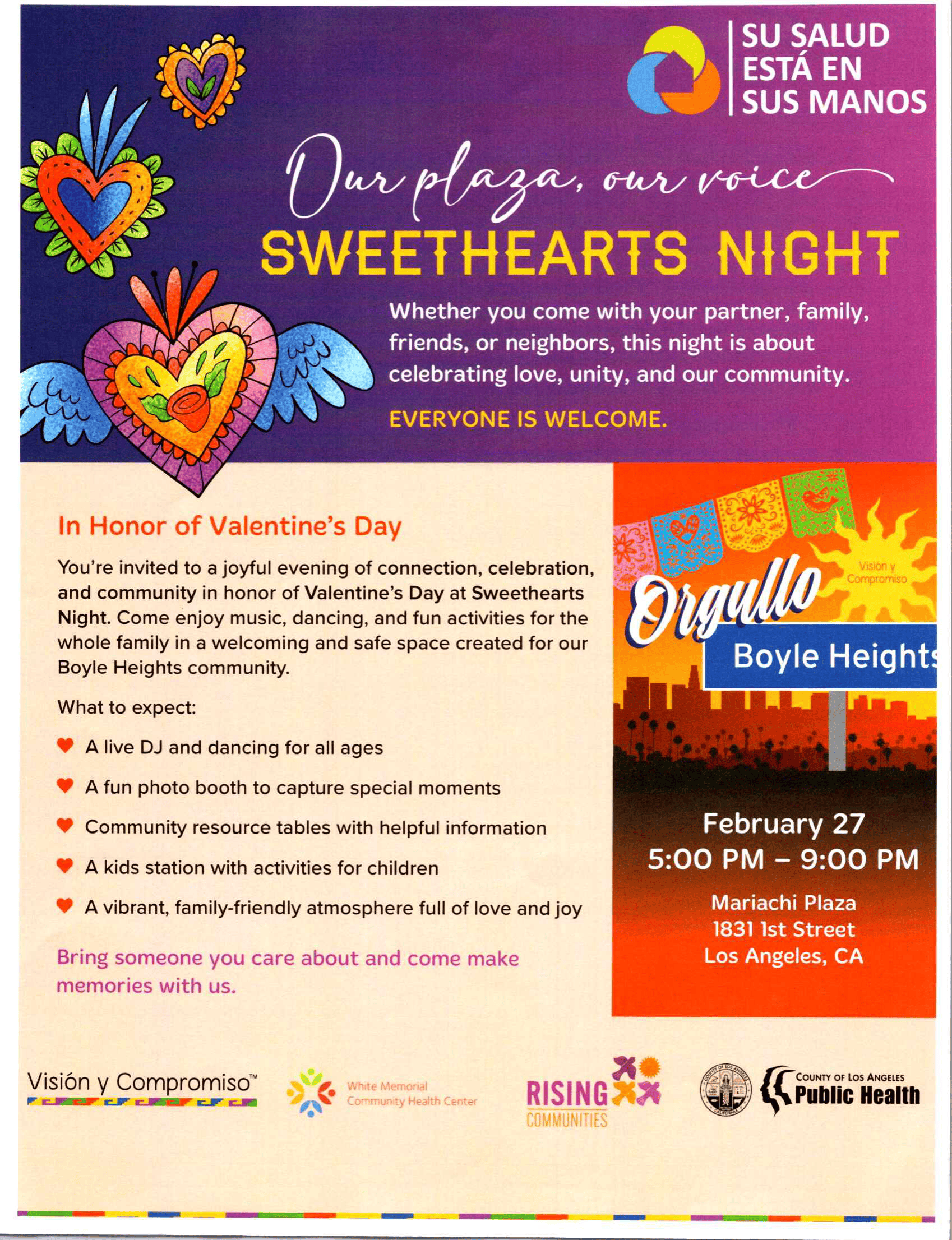 Celebrate love, unity, and community at our upcoming Sweethearts Night in Boyle Heights. Whether you’re coming with your partner, family, friends, or neighbors, this is a night dedicated to making memories in a safe, welcoming space for everyone.