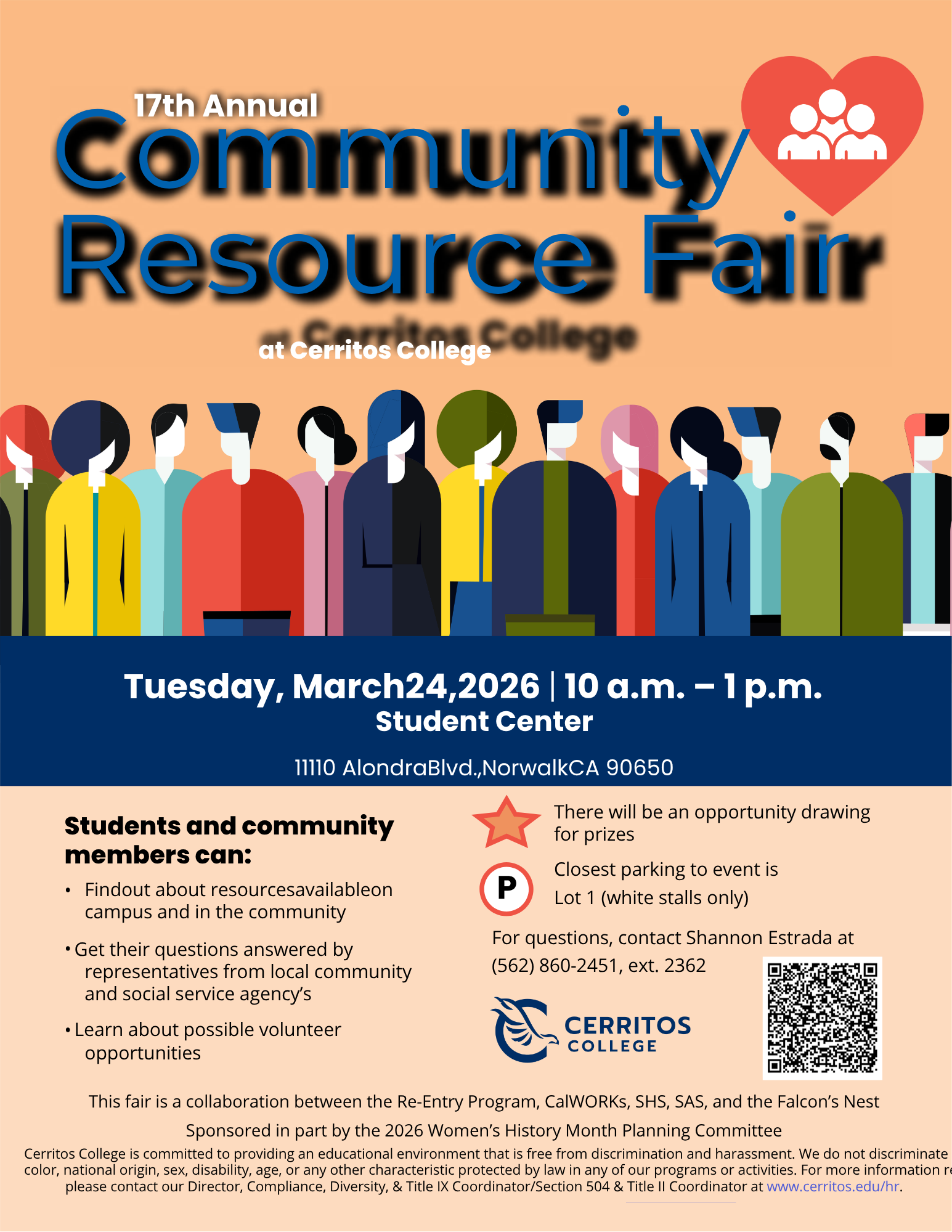 This fair is a collaborative effort between the Re-Entry Program, CalWORKS, SHS, SAS, and the Falcon's Nest, and is sponsored in part by the 2026 Women's History Month Planning Committee.
