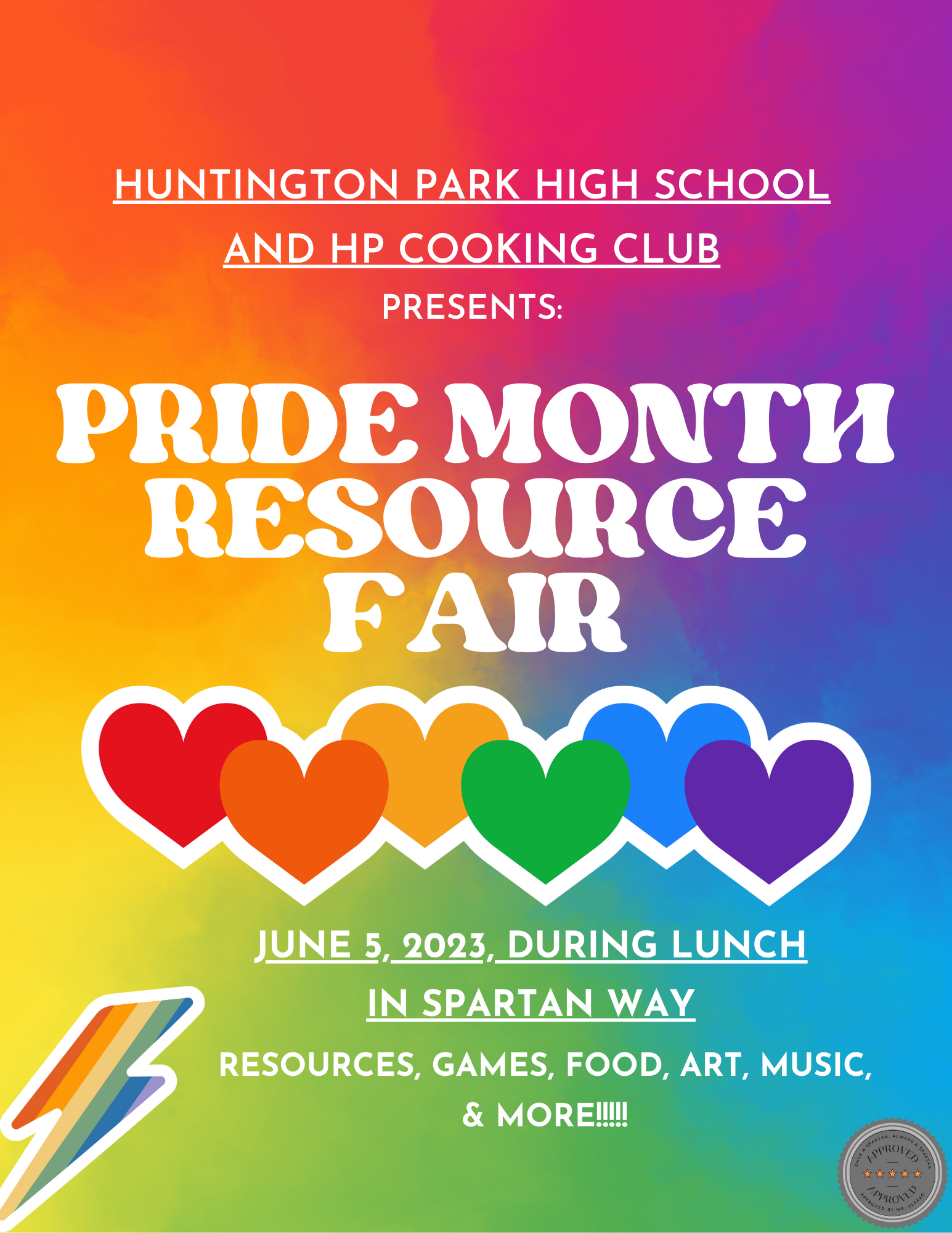 Join us for the Pride Month Resource Fair hosted by Huntington Park High School and the HP Cooking Club! Celebrate diversity and inclusion with an exciting lineup of activities including resources, games, food, art, music, and more. This vibrant event is an opportunity to connect with the community, enjoy entertainment, and support Pride Month.