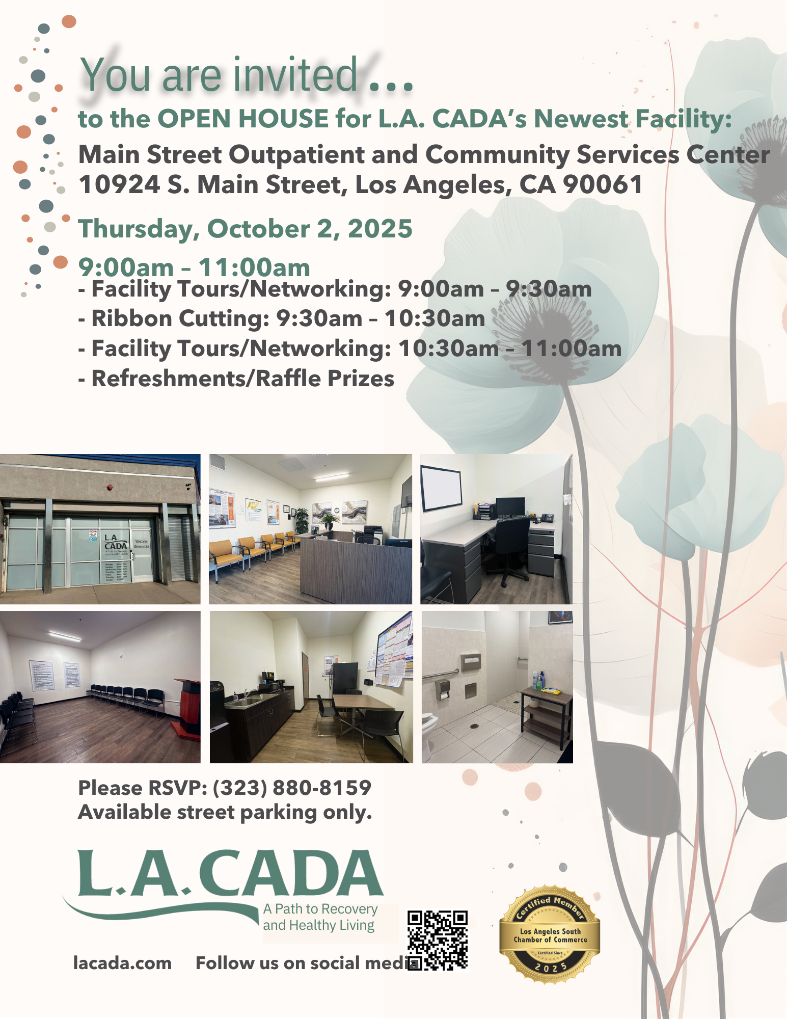 You are invited to celebrate the opening of L.A. CADA’s newest facility, the Main Street Outpatient and Community Services Center. This event is a wonderful opportunity to see the new space, network with others, and celebrate this important milestone for our organization and community.