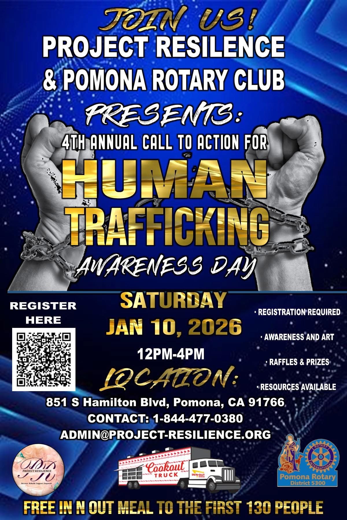 Event Description: Join us for an afternoon dedicated to community, education, and support. Project Resilience and the Pomona Rotary Club represent a united front in the fight against human trafficking. This 4th annual event will feature awareness through art, vital resources, and opportunities to connect with the community.