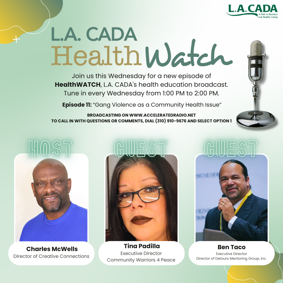 But in what sense can gang violence also be seen as a community health problem? We'll explore that question in this 11th Episode of HealthWATCH.. Joining me in the studio are Tina Padilla and Ben Owens.