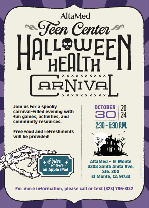 L.A. CADA’s Youth Department is thrilled to be a part of AltaMed’s Halloween Health Carnival! Join us for a spook-tacular event filled with fun activities and a resource fair featuring amazing organizations providing valuable resources for our youth. Don’t miss out on the excitement!